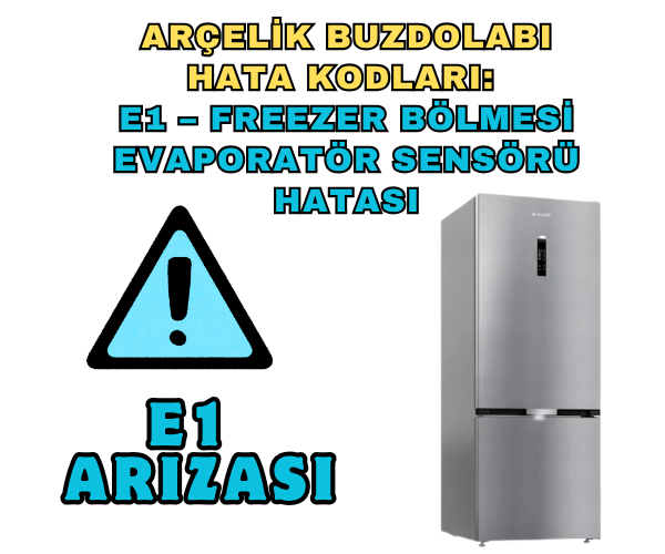 Arçelik buzdolabı E1 hatası, E1 hata kodu nedir, buzdolabı evaporatör sensör arızası, Arçelik buzdolabı hata kodları, E1 hata kodu nasıl çözülür, buzdolabı soğutmuyor, Arçelik teknik destek, buzdolabı evaporatör sensörü temizliği, buzdolabı parça değişimi, Arçelik yetkili servis, buzdolabı bakım ipuçları, buzdolabı hata mesajları