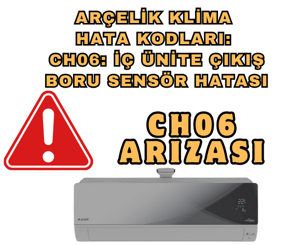 Arçelik klima CH06 hatası, CH06 hata kodu nedir, Arçelik klima hata kodları, iç ünite çıkış boru sensörü problemi, CH06 hata kodu nasıl çözülür, klima sensör arızası, Arçelik teknik destek, Arçelik yetkili servis, klima sensör temizliği, iç ünite dış ünite sensör bağlantısı, Arçelik klima hata mesajları