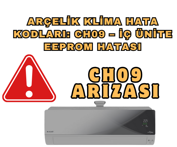 Arçelik klima CH09 hatası, CH09 hata kodu nedir, Arçelik klima hata kodları, EEPROM bellek arızası, iç ünite bellek hatası, CH09 hata kodu nasıl çözülür, klima yazılım hatası, Arçelik teknik destek, EEPROM bellek problemi, Arçelik yetkili servis, Arçelik klima uyarıları, EEPROM sensörü, hafıza hatası klima